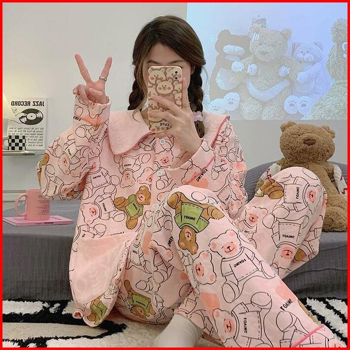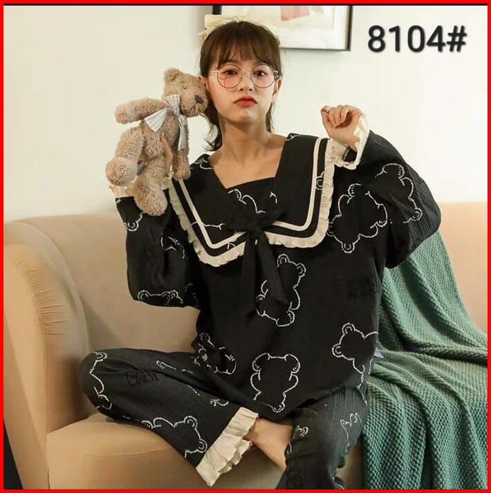 Ml888-set Piyama Kerah Babydoll Pp Baju Tidur Muslimah Terbaru Setelan Wanita Import Murah Celana Fit Silk Atasan Kaos M