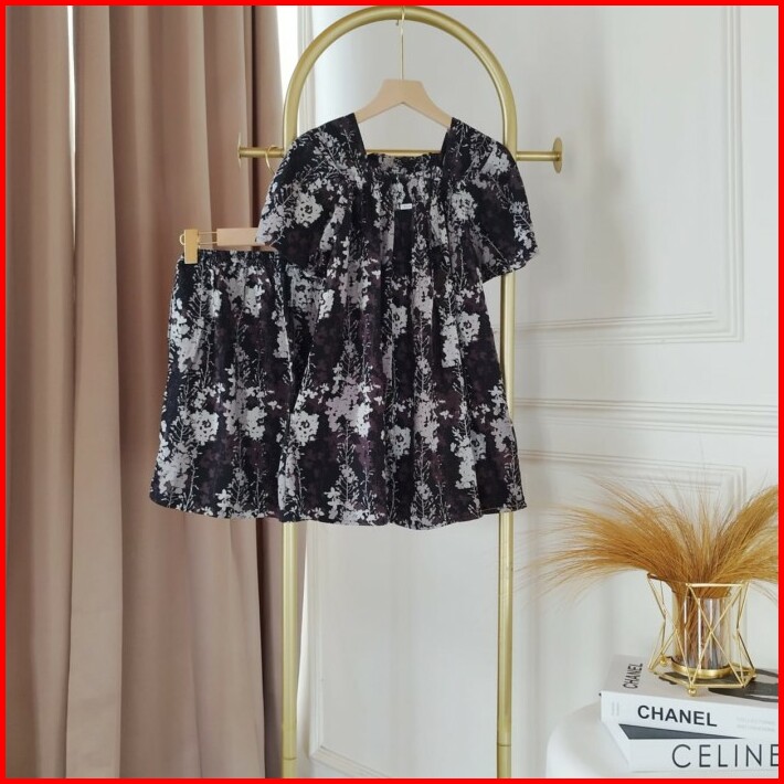 Setelan Baju Tidur Kerut Dada Wanita Piyama Kekinian