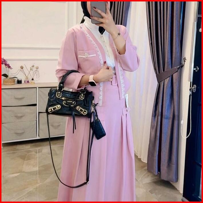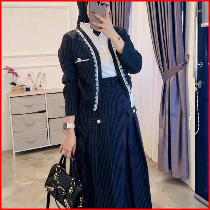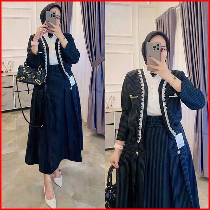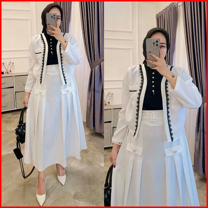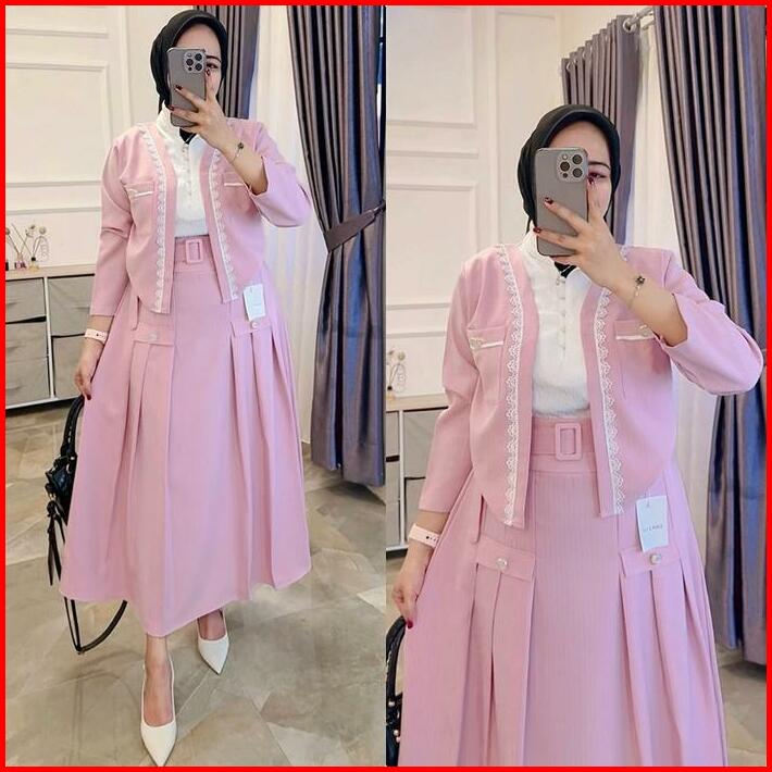 Setelan Ardila Salur One Set 2in1 Pakaian Wanita Setalan Rok Aline Motif Linen Muslim Mewah Panjang Kondangan Cantik Cas
