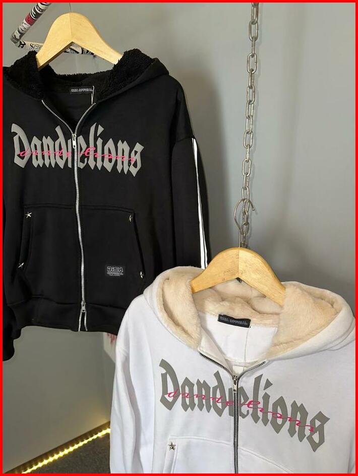 Hoodie Jaket Boxy Zipper Reflektif Menyala Unisex Sablon Foaming Dandelions