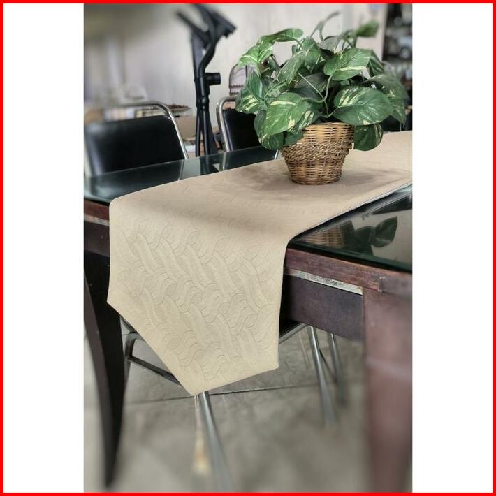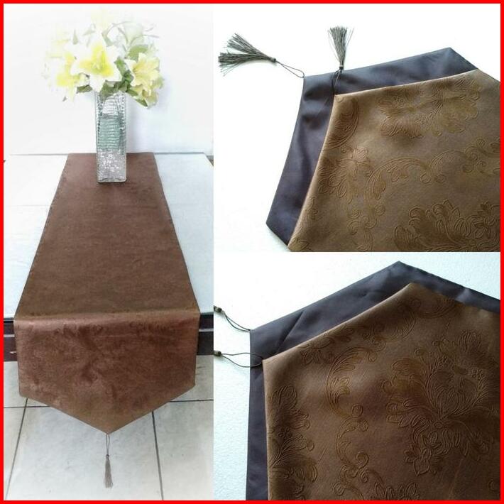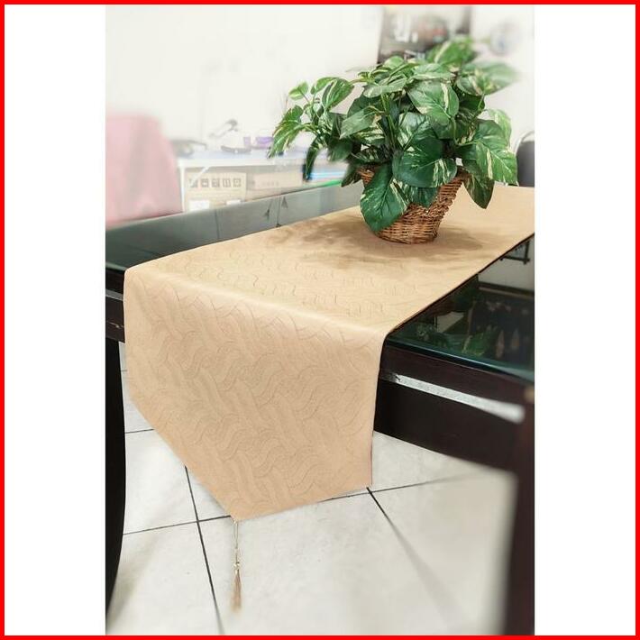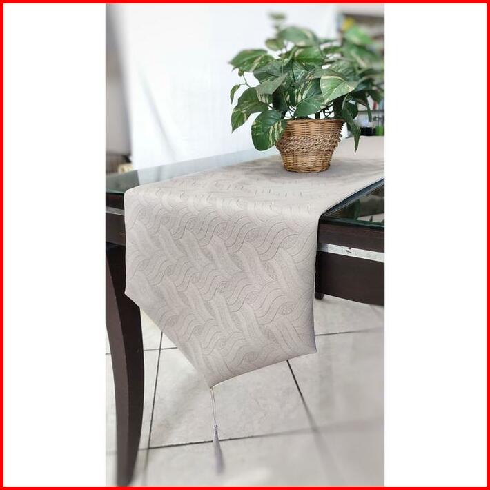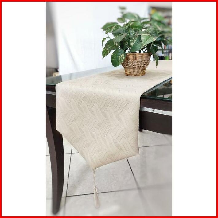 Taplak Meja Makan 6 Kursi 8 Kursi Table Runner Bahan Kain Polos Emboss Taplak Meja Polos . Panjang Hingga 2.7 M Rumbai