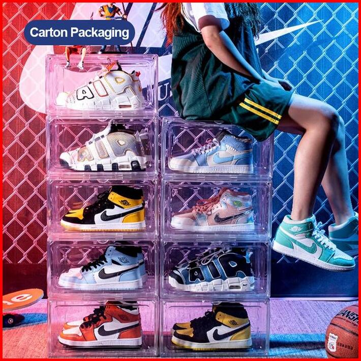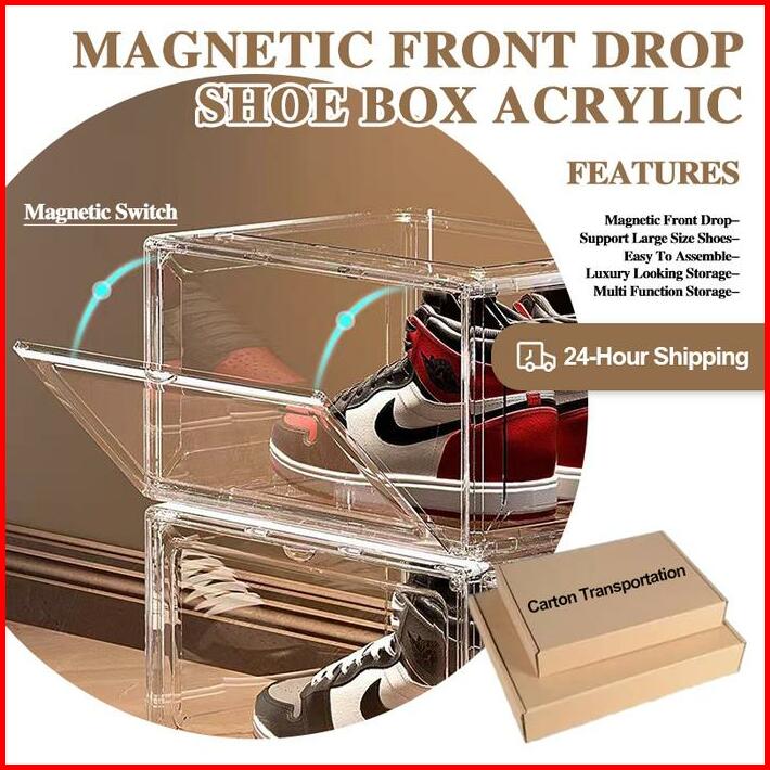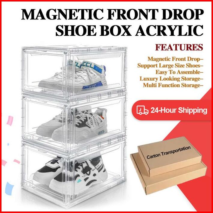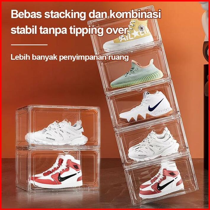 Kotak Sepatu Box Akrilik Rak Sepatu Magnetik Yang Dapat Shoes Box Ditumpuk Organizer Pameran Penyimpanan Transparansi Ti