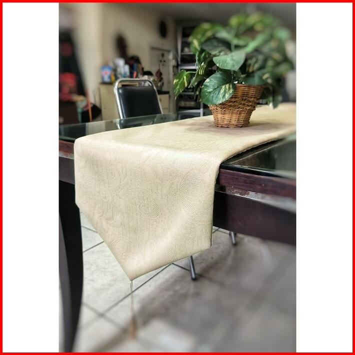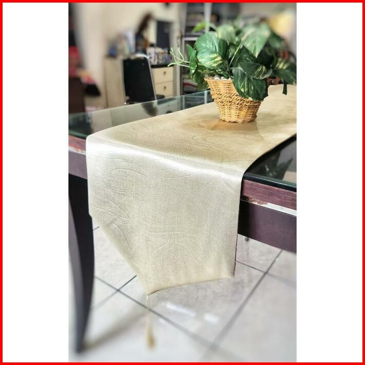 Taplak Meja Tamu Meja Makan Table Runner Kain Polos Emboss 2 Lapis Untuk Dekorasi