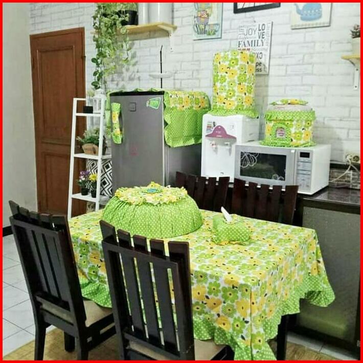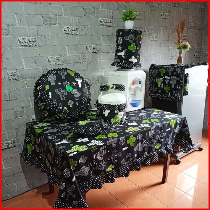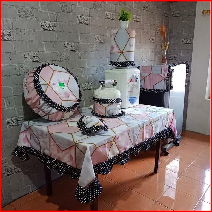 Paket Kitchen Set 8 Pcs Taplak Meja Makan Sarung Cover Galon Kulkas Magicom Mejikom Tudung Saji Bulat Bundar Kotak Tempa