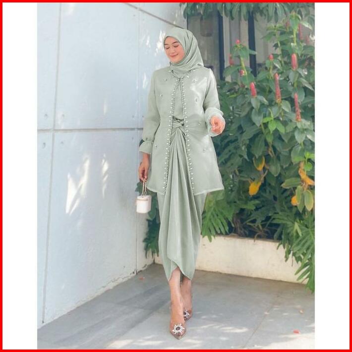 Jeema One Set Setelan Inner Outer Dan Rok Lilit Queenbee Fashion Baju Gamis Muslim Kebaya Wanita Pesta Kondangan Bridesm