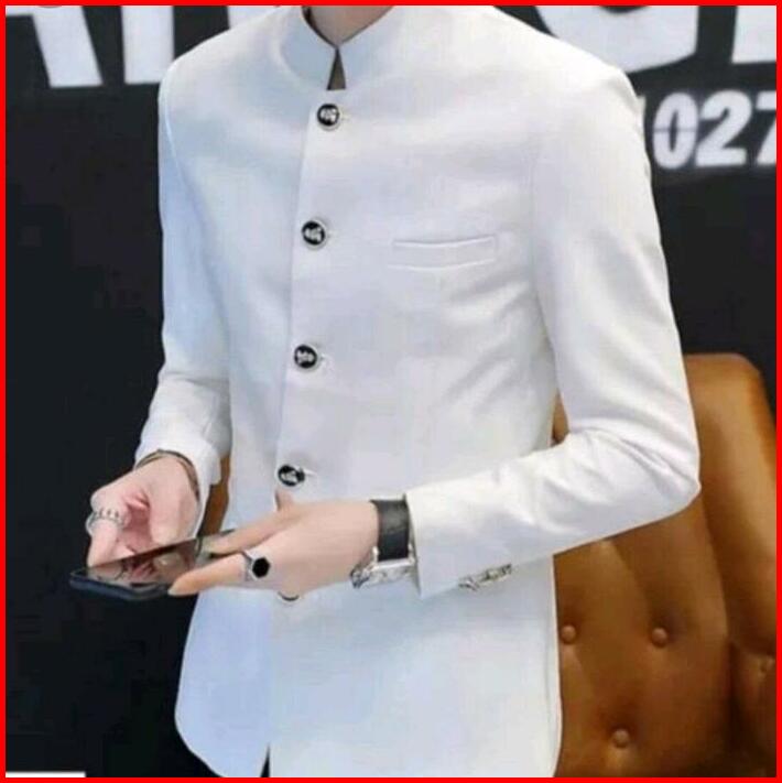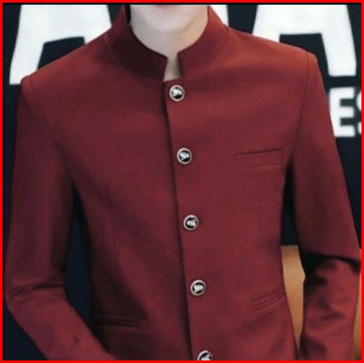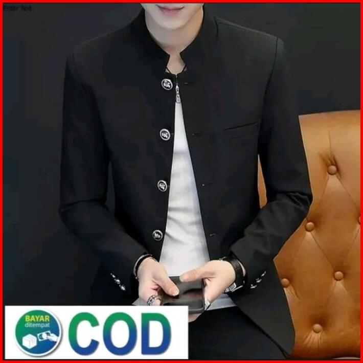 Jasko Mandarin Pria Kancing Motif Kain Nyaman Baju Koko Kantong Panjang Tangan Variasi Muslim Baju Koko Atasan