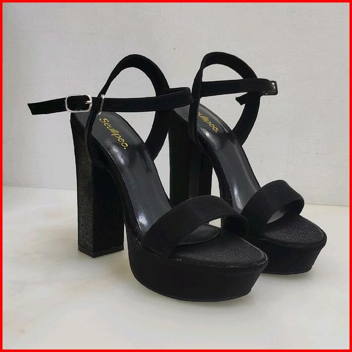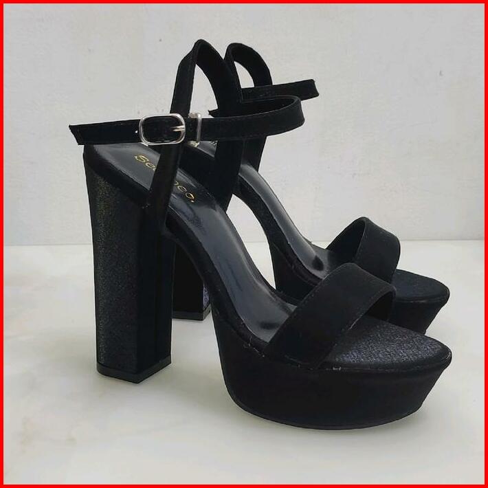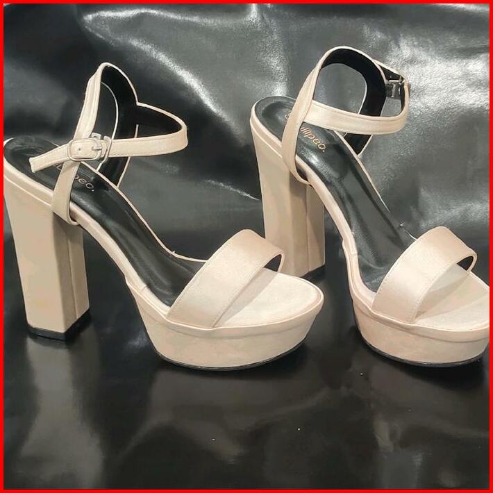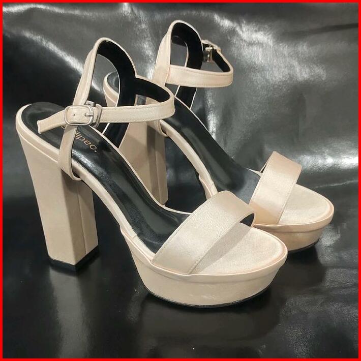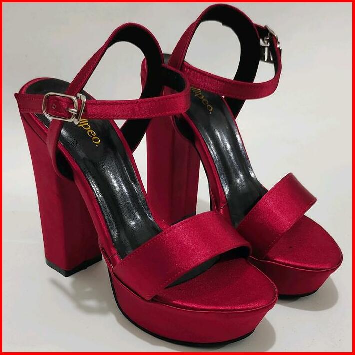 High Heels 13cm Big Chunky Bahan Satu Satin Premium
