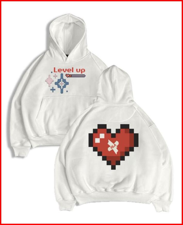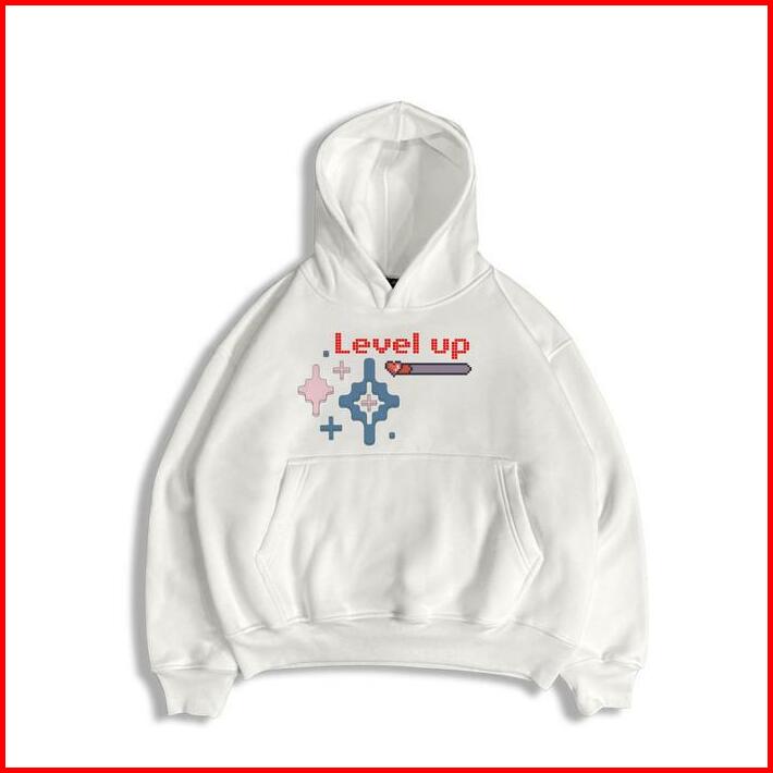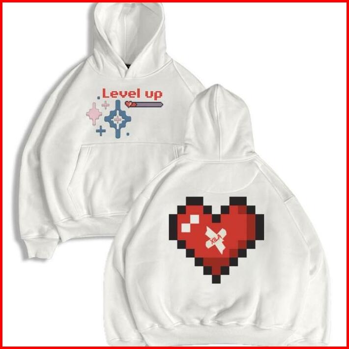 Pullover Hoodie Putih Love Is Level Up Vintage Fleece