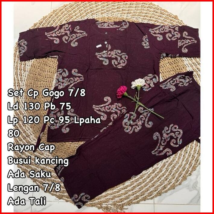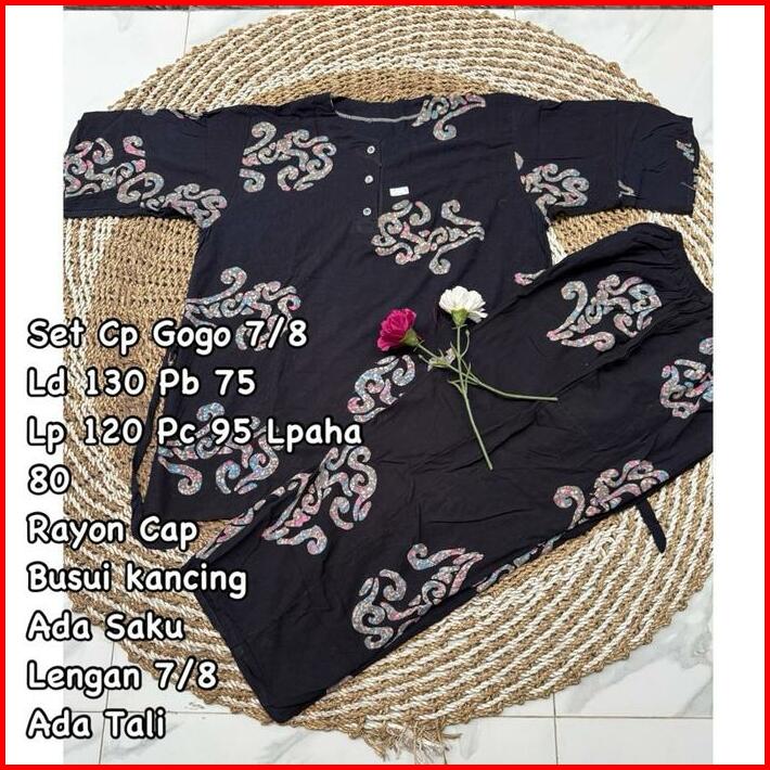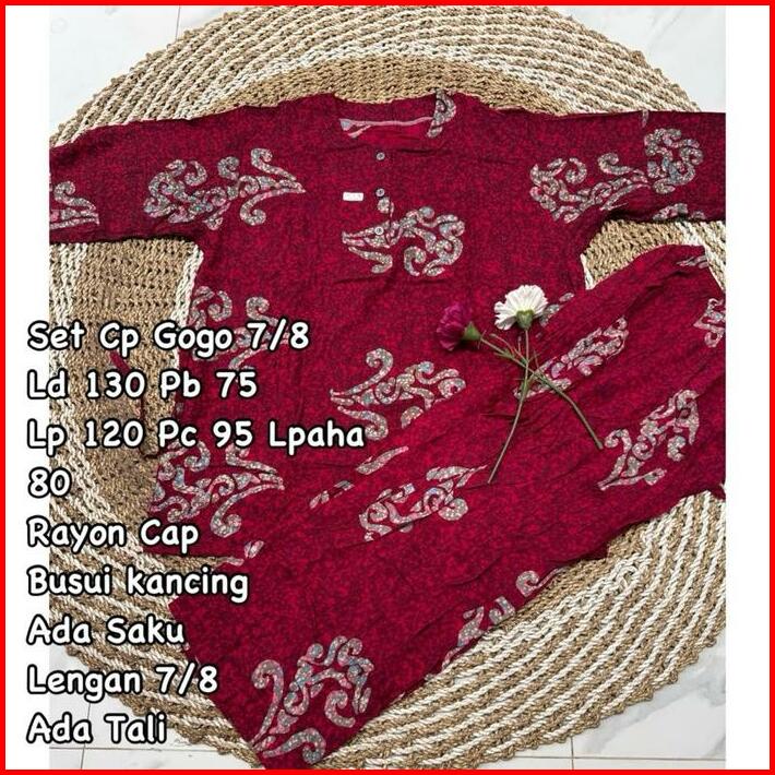 Setelan Cp Gogo Rainbow Lengan 3 4 Ld 130 Saqueena Batik Baju Celana Motif Variasi Wanita Panjang Atasan Kulot Top Putih