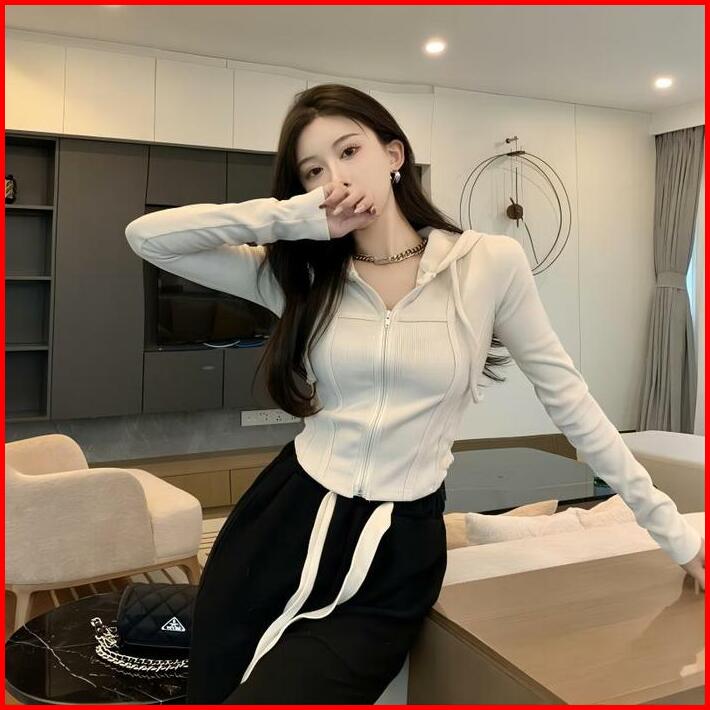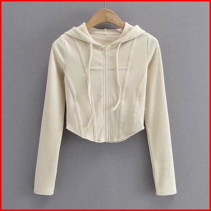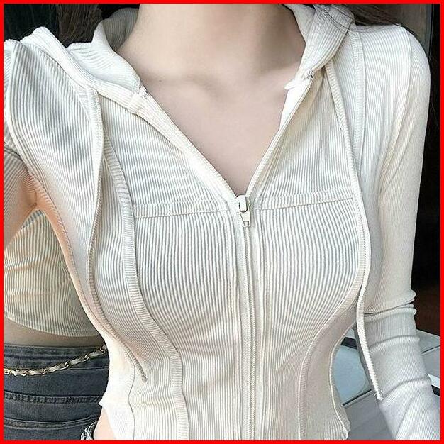 Jaket Hoodie Crop Top Wanita Lengan Panjang Zipper Long Sleeve Baju Atasan Fashion Korea Import Free Ongkir Katun Bahan