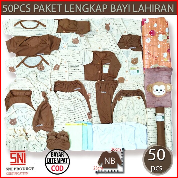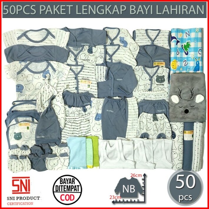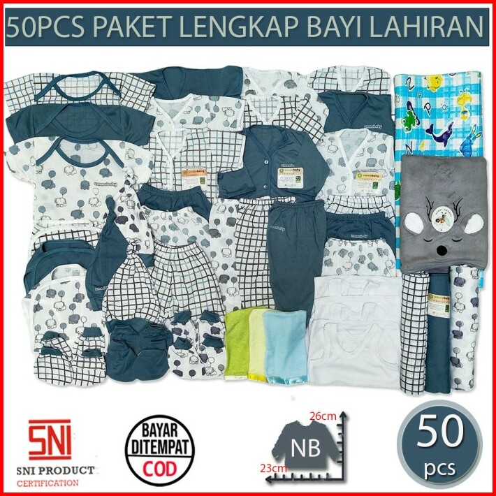 Ummababyshop 50 Pcs Baju Bayi Setelan Lengan Panjang Kutung Pendek Brojol Sarung Tangan Kaki Bayi Gift Set Newborn Handu