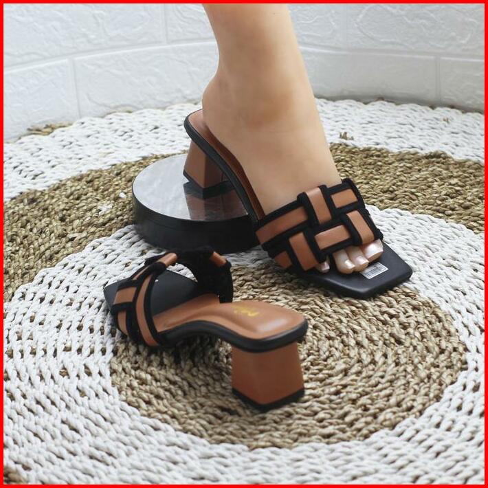 Women Sandals High Heels 5 Cm Woven For Daily And Party Sandal Hak Tahu 5cm Wanita Kondangan Slop Slip On Kokop Anyam Ku