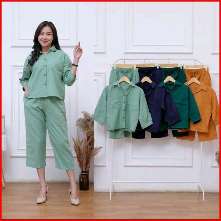 One Set Crop Bella Set Setelan Wanita Kekinian Setelan Linen Santai Nyaman Terbaru Katun