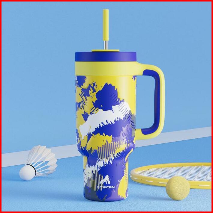 Gelas Minum Powcan 40 Oz 1100 Ml Dengan Tangkai Tutup Anti Bocor Dan Sedotan Dapat Digunakan Untuk Minum Langsung Atau D