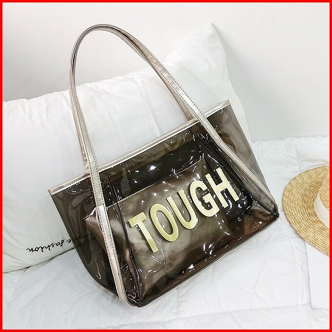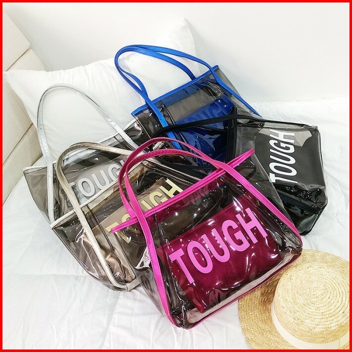 Tas Wanita Transparan Totebag Pvc Plastik Fashion Cewek Modis Keren