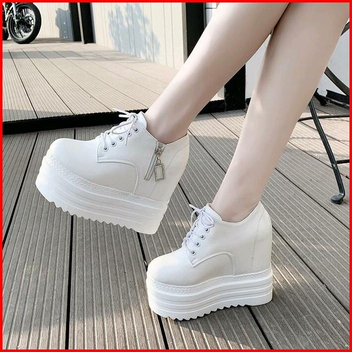 Yzl Sepatu Wedges Plat Tinggi 2020 Kulit Impor Good Quality Casual Hitam Shoes Hak Datar Putih Wanita