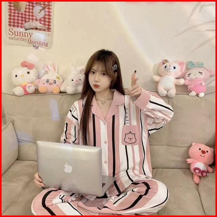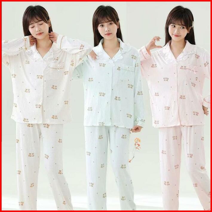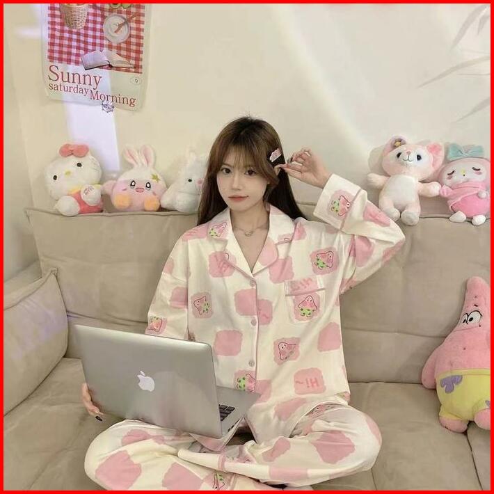 Piyama Pp Baju Tidur Wanita One Set Setelan Jumbo Lengan Panjang Cotton Premium Katun Dewasa