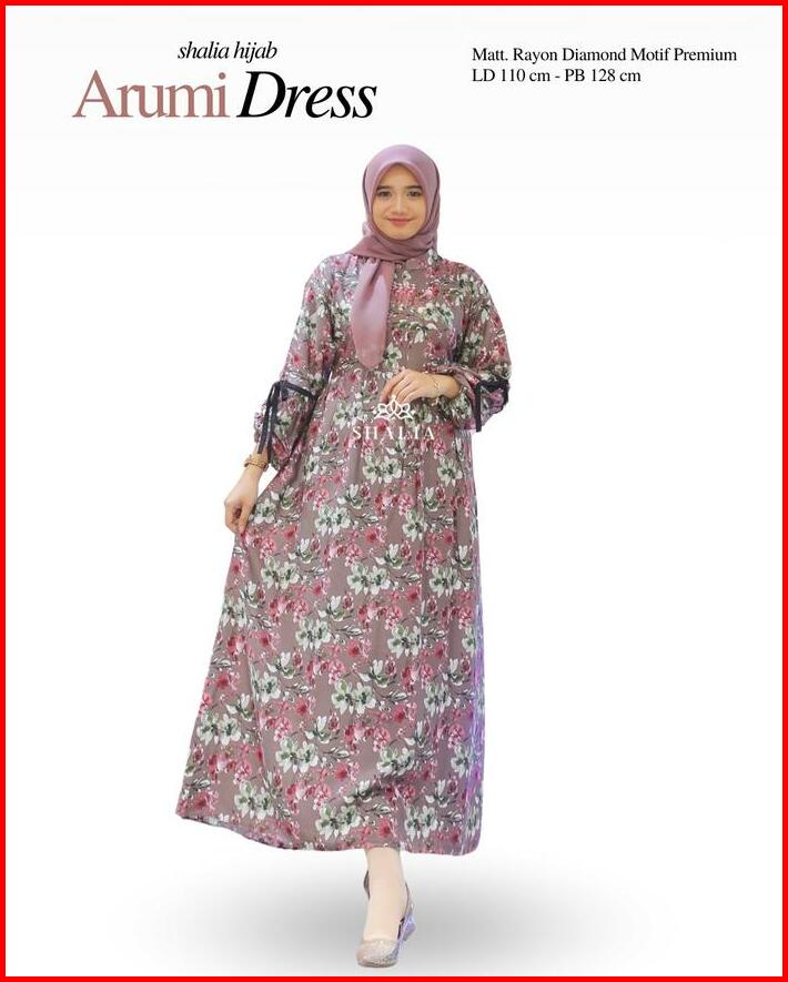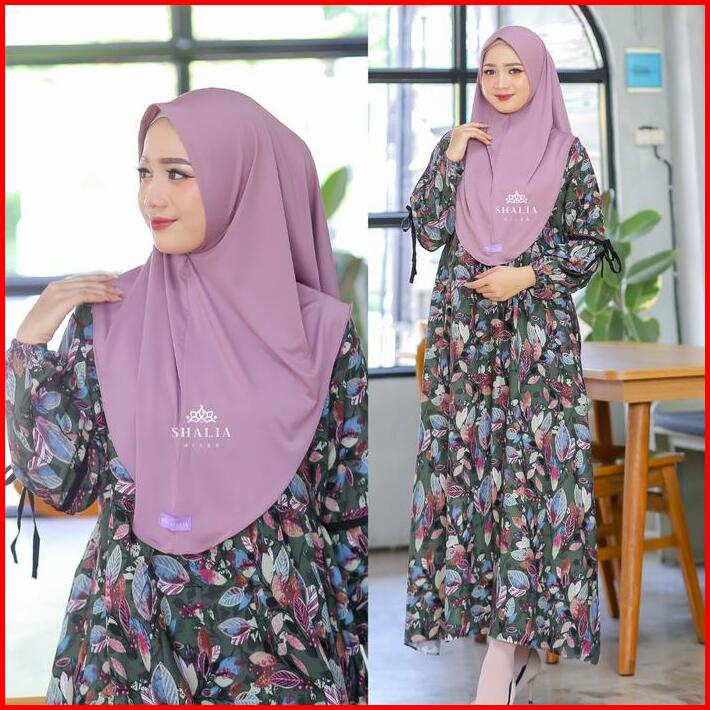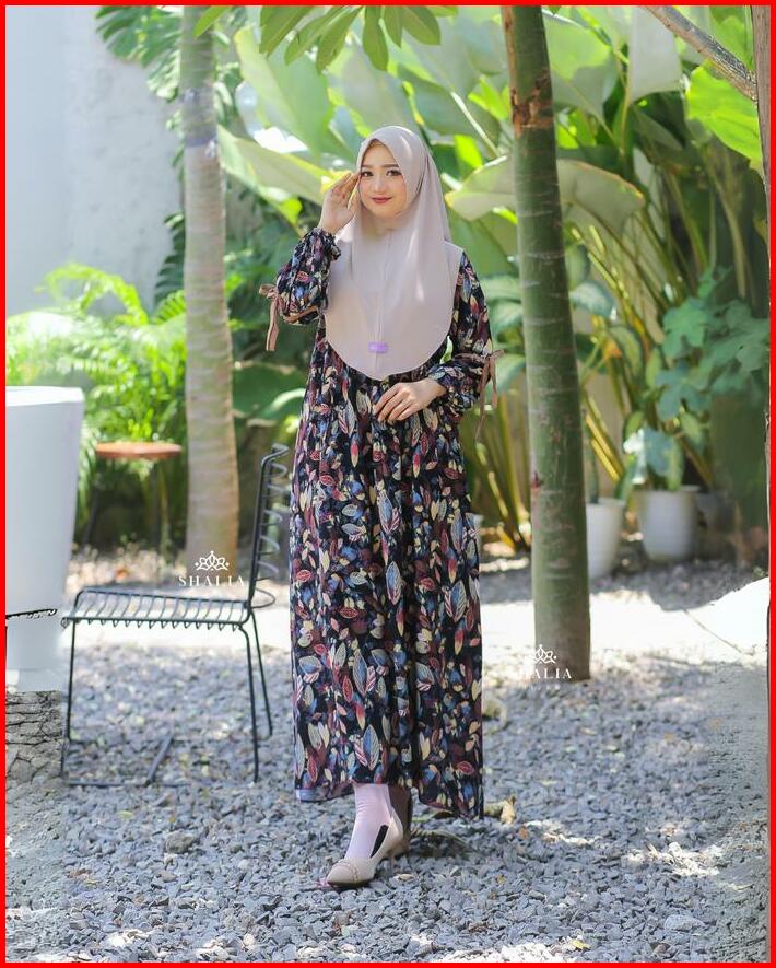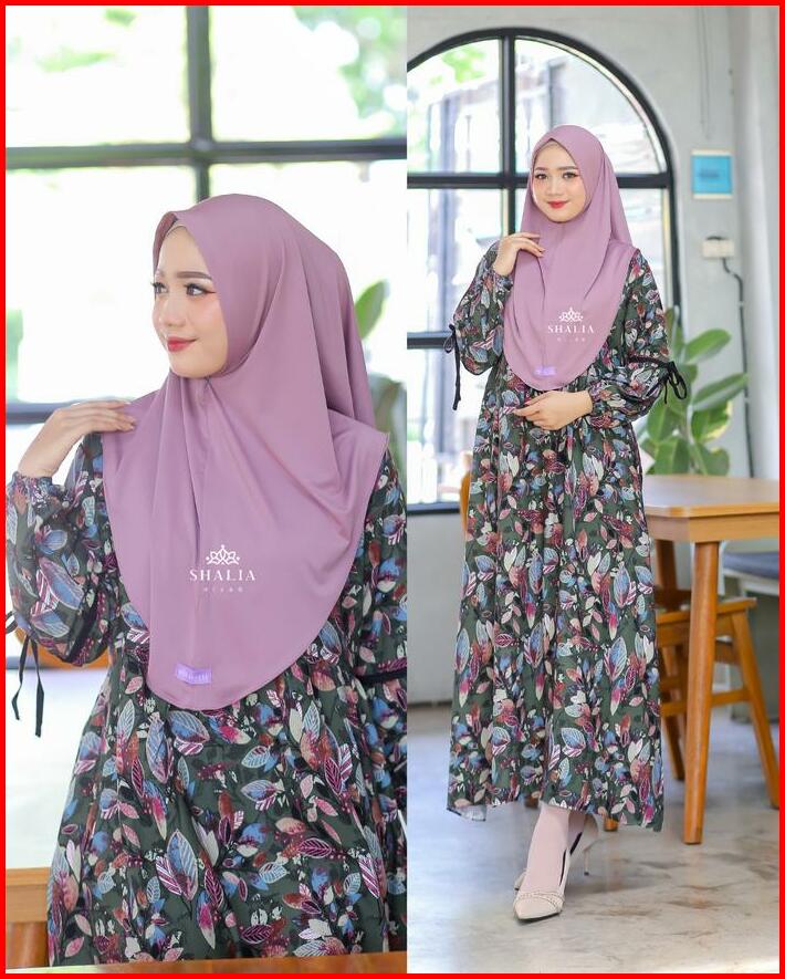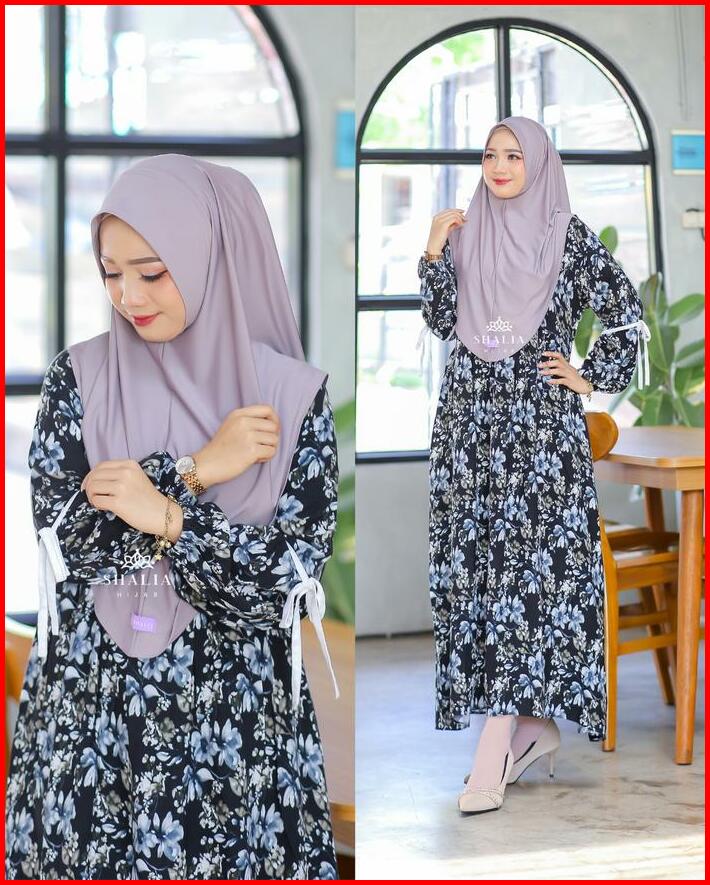 Dress Anjani Rayon Diamond Motif Bunga Premium Adem Simple Syari Set Hijab Bergo Gamis Midi Jumbo Busui Bumil Terlaris K