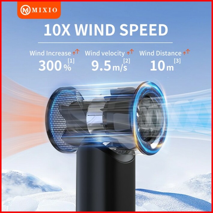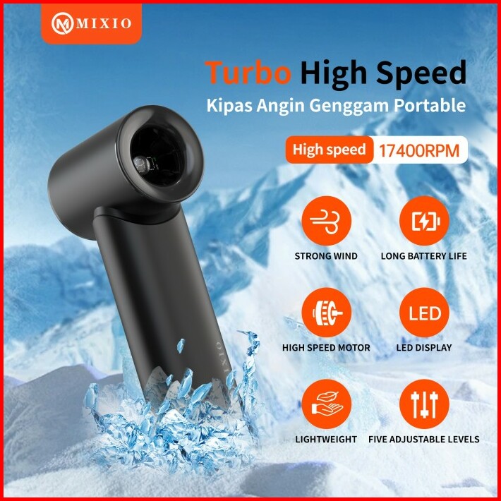 Mixio Gs-04 Mini Kipas Angin Turbo Strong Portable Handheld Rechargeable Mini Fan Lipat High Speed 17400rpm