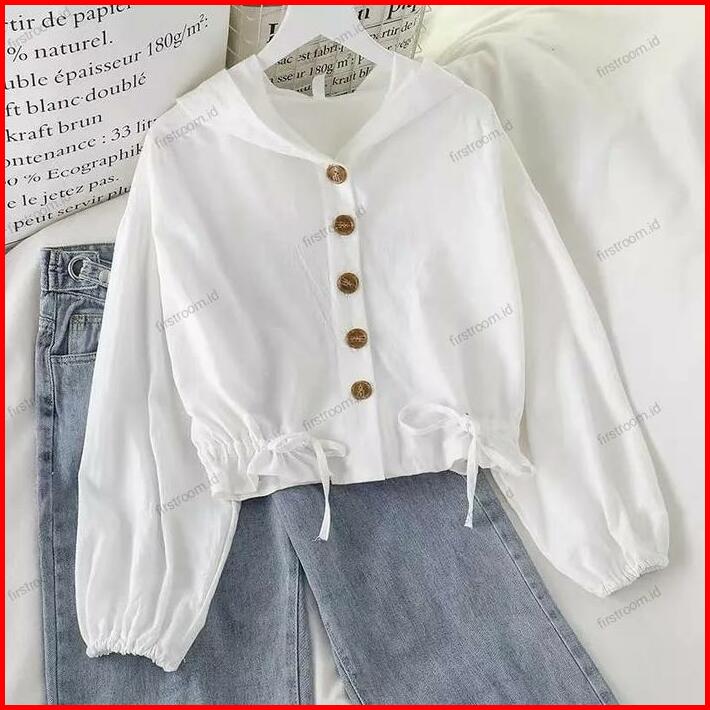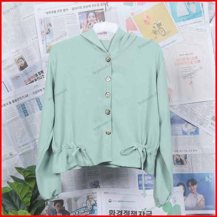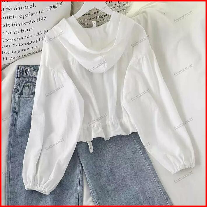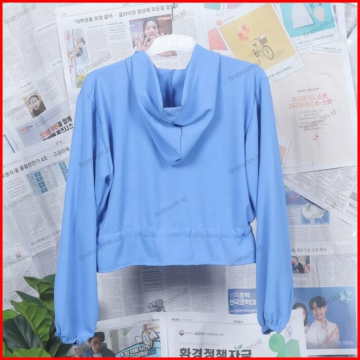 Vinka Top Outer Hoodie Wanita Baju Atasan Remaja Serut Hitam Panjang Crinkle