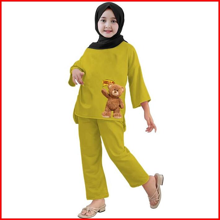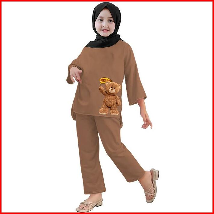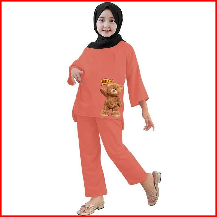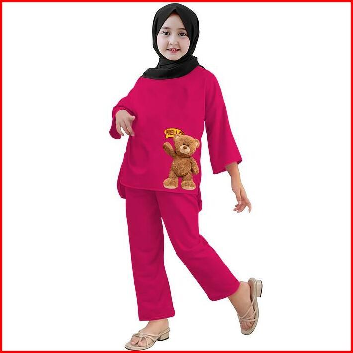 Setelan Anak Perempuan Bear Dw 5-13 Tahun Sablon Dtf Hoodie Kids