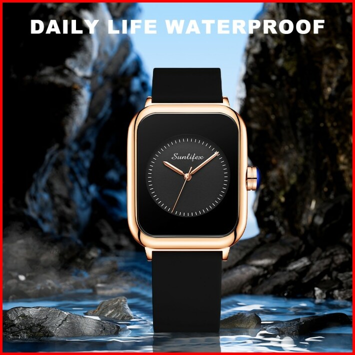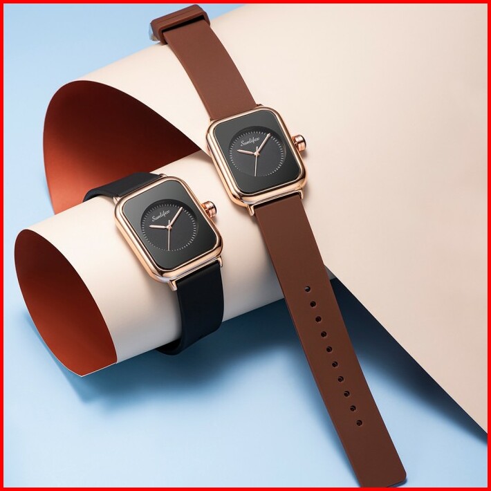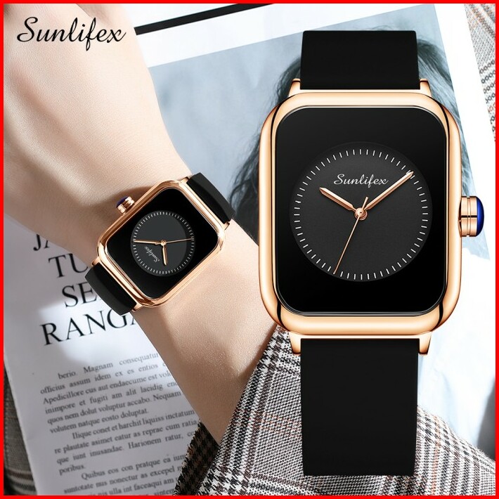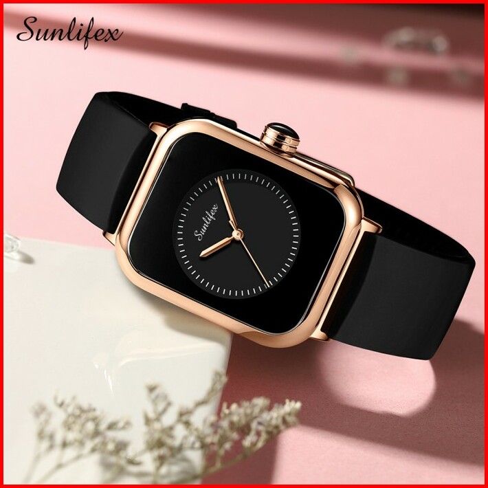 Sunlifex Jam Tangan Wanita Square Anggun Tali Silikon Jam Tangan Cewek