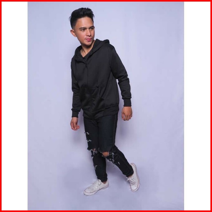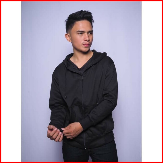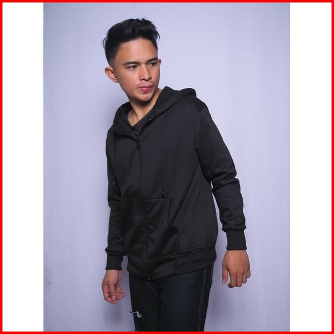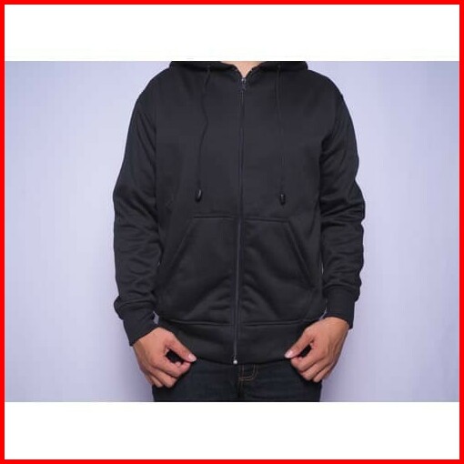 Jaket Sweater Hoodie Zipper Sleting Hitam Polos Unisex