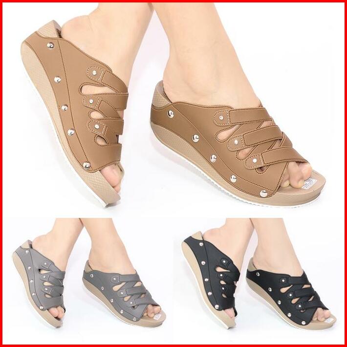 Sandal Wanita Wedges Sendal Perempuan Selop Slop Hak Tinggi Pesta Kondangan Kekinian Terbaru High Heels Ibu Ibu Terlaris