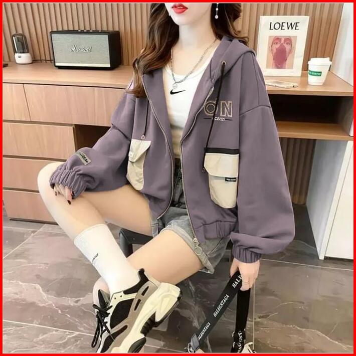 One Ocean Ziper Hoodie Sweater Sweater Hoodie Wanita Fleece