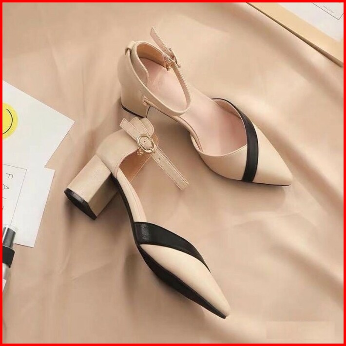 Mivelshoes Sepatu Wanita Cream Mocca Krem Ja20 High Heels Hak Tinggi 5cm Kotak Tahu Premium Fashion Korea Pesta Formal K