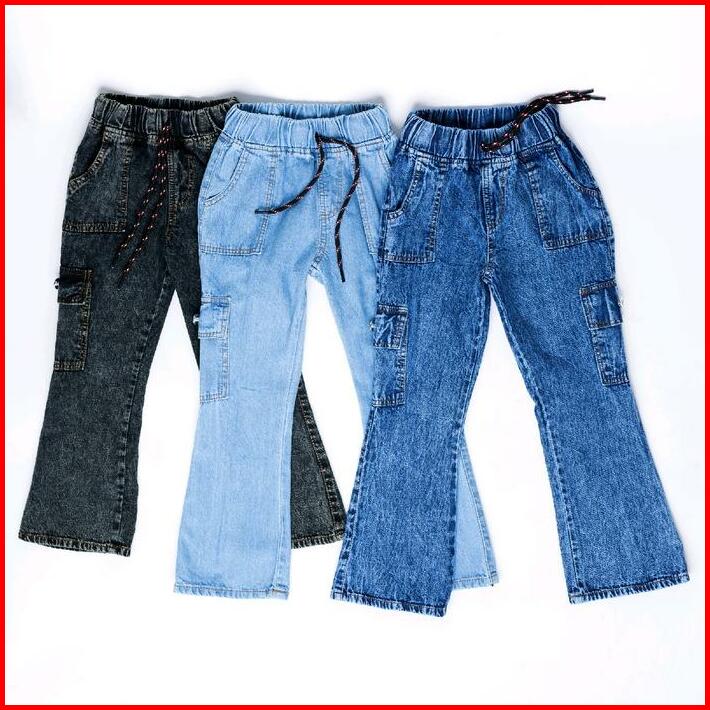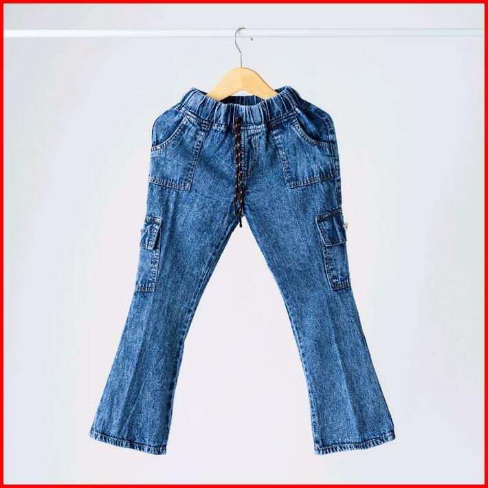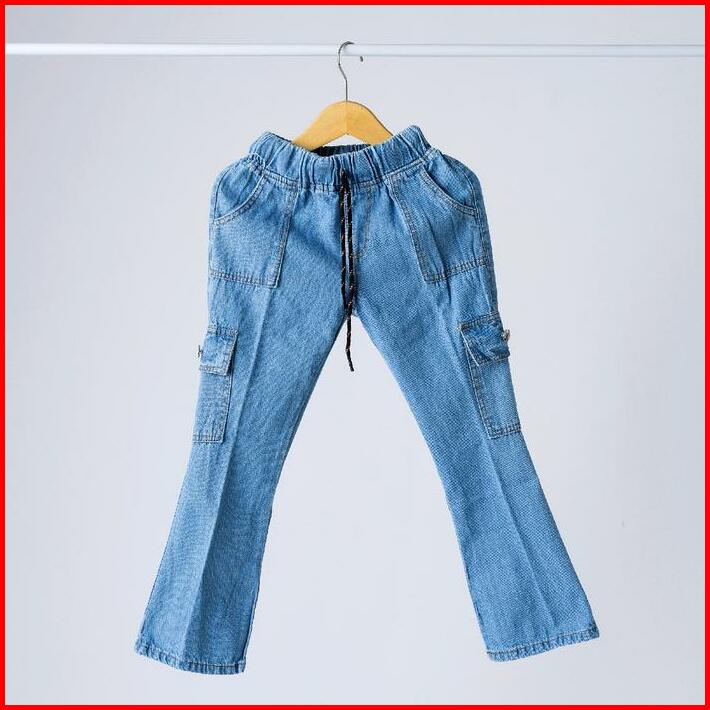 Celana Panjang Cutbray Cargo Anak 1-7 Tahun Pinggang Full Karet Tali Bunda Cewe Cowo Jaket Bayi Minimalis Snow Biru Deni