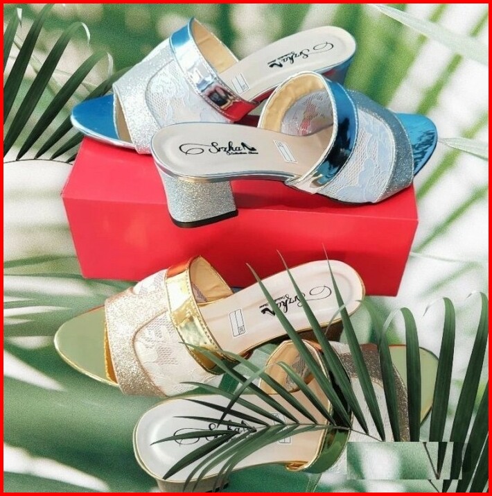 Sepatu Sandal Wanita Premium Silver Rj10 High Heels Hak 5 Cm Kotak Tahu Kekinian Kerja Kantor Pesta Kondangan Formal Cas