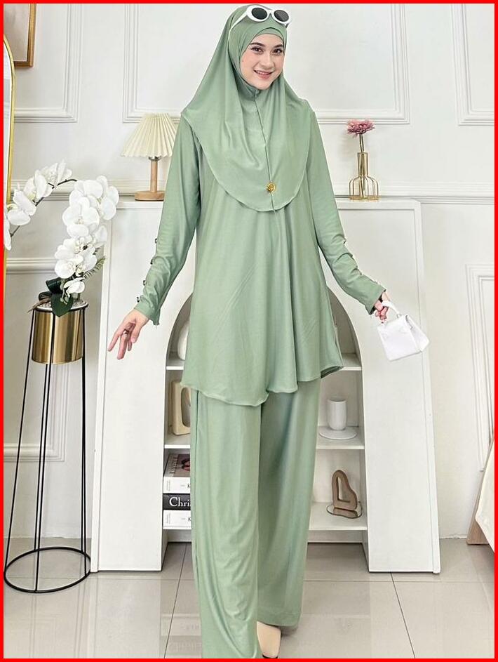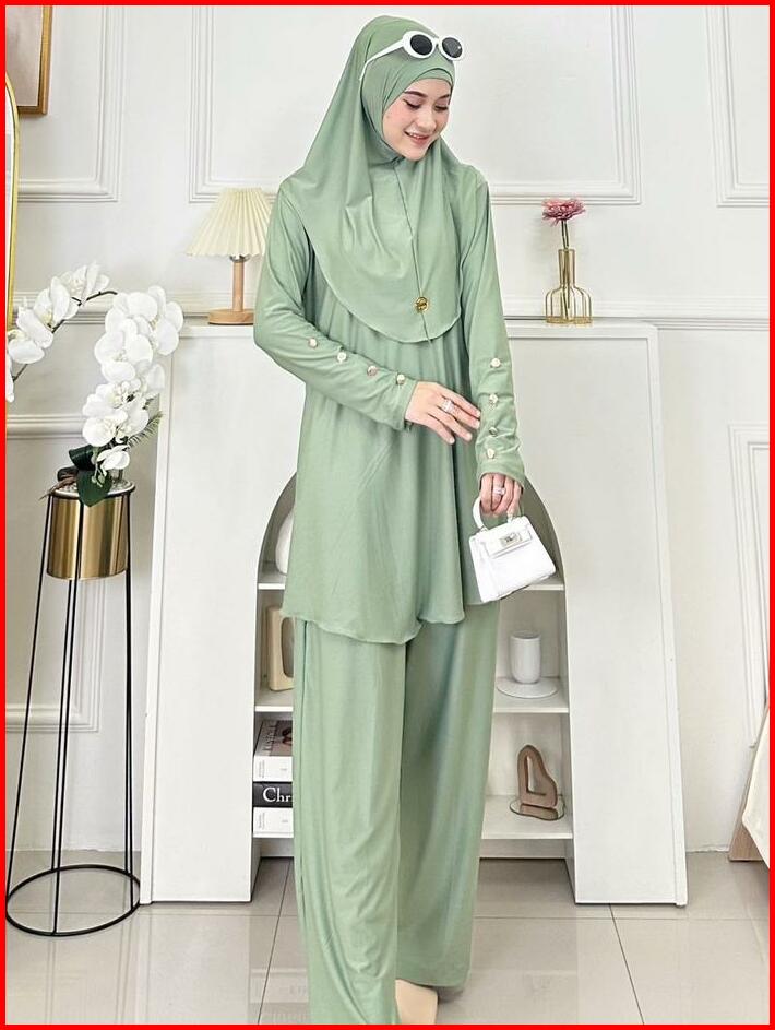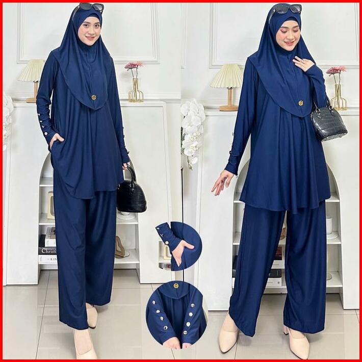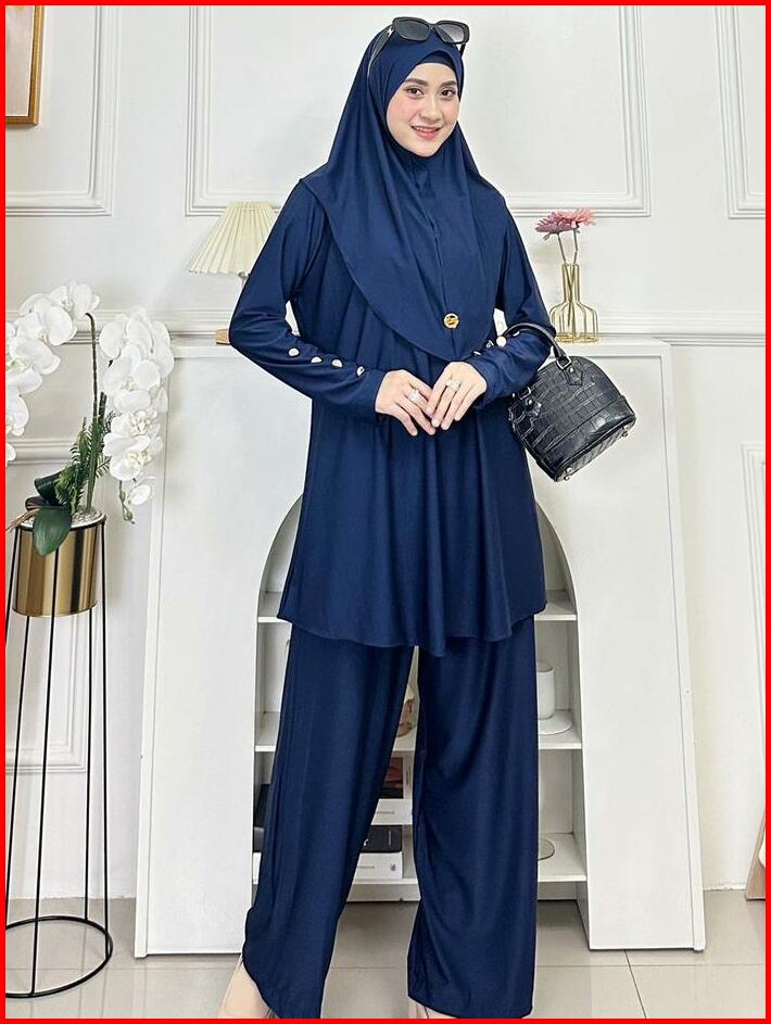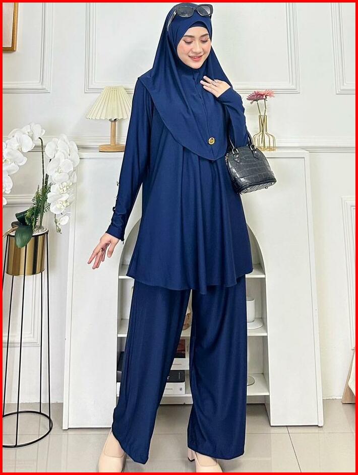 Yasir L Stelan Celana Atasan Hijab Bergo Inner Kerudung Inara Setcel Wanita Bahan Spandek Balon