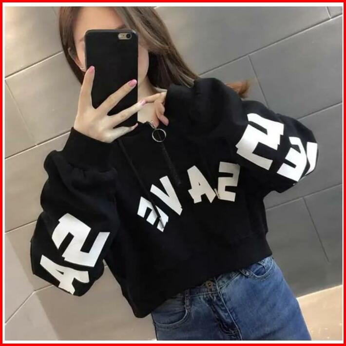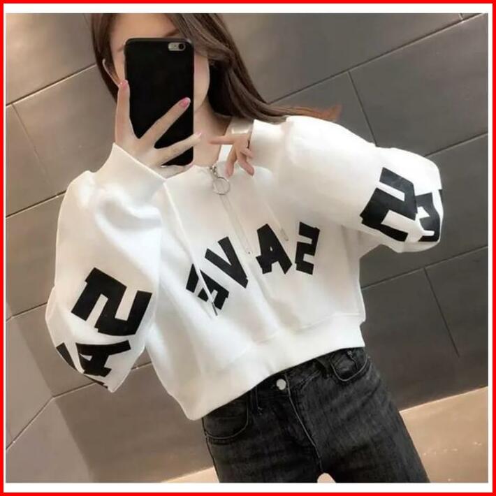 Save Crope Zipper Sweater Hoddie Sweater Crope Wanita Basic Fleece Hoodie Atasan Oversize Tebal Baju