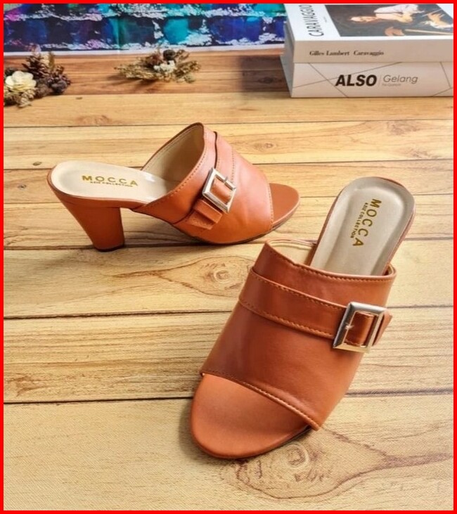 Sepatu Sandal Wanita Coklat Tan Premium Branded Dw37 High Heels Hak Tinggi 7 Cm Fashion Korea Style Kekinian Sendal Kerj