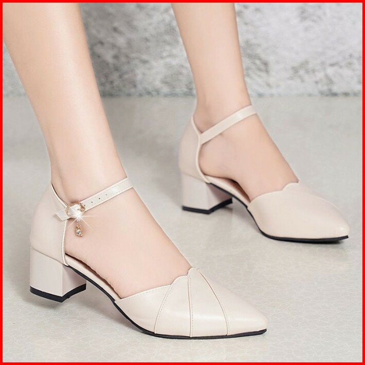 Sepatu Fashion Wanita Hak 5cm High Heels Kotak Tahu Kerja Pesta Ys916