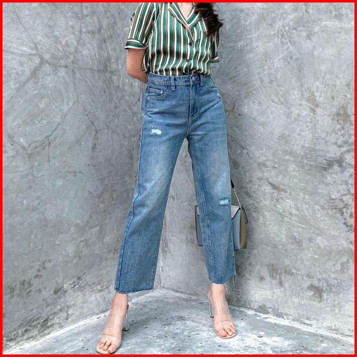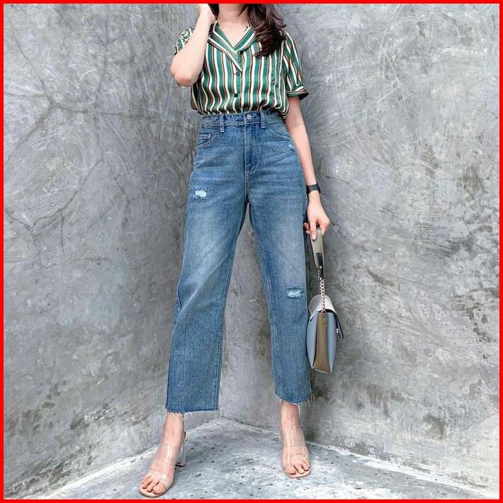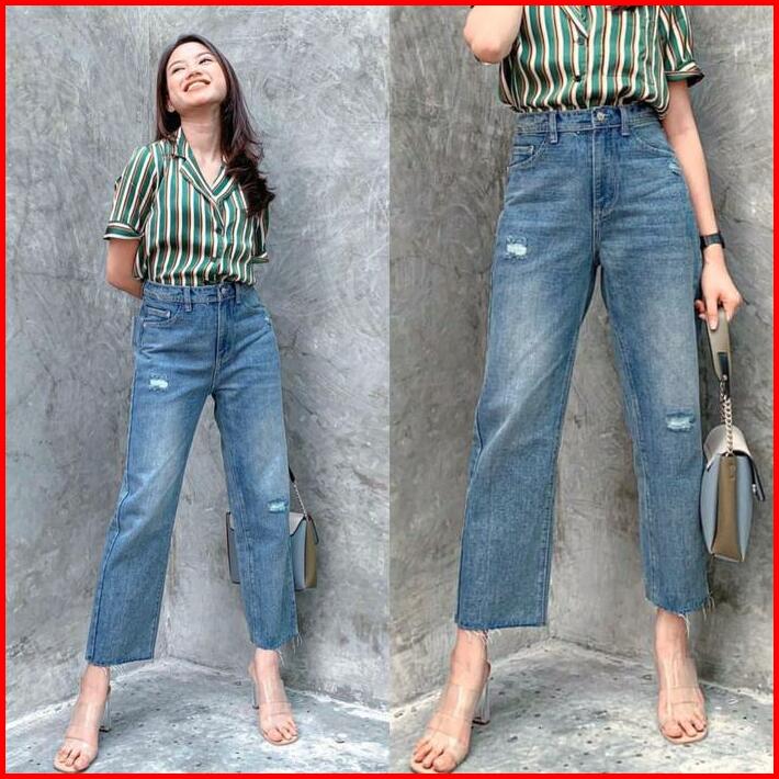 Celana Jeans Wanita Bf Roosie Sz 27-34 Sobek Tidak Tembus Boyfriend Jeans Baggy Cewek Panjang