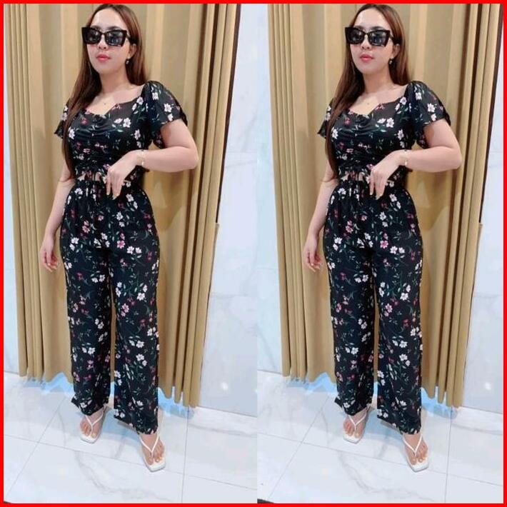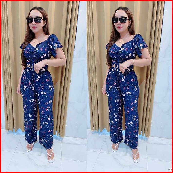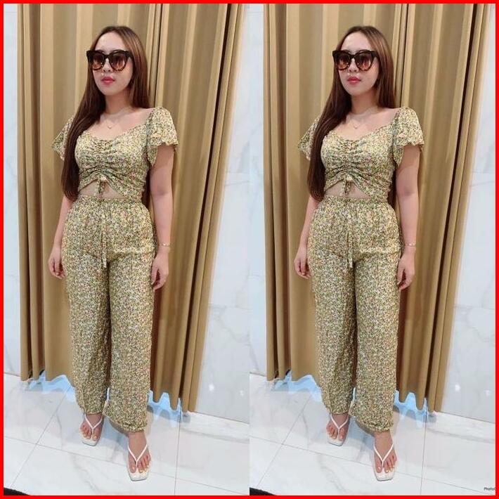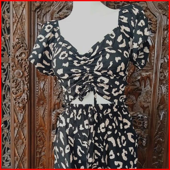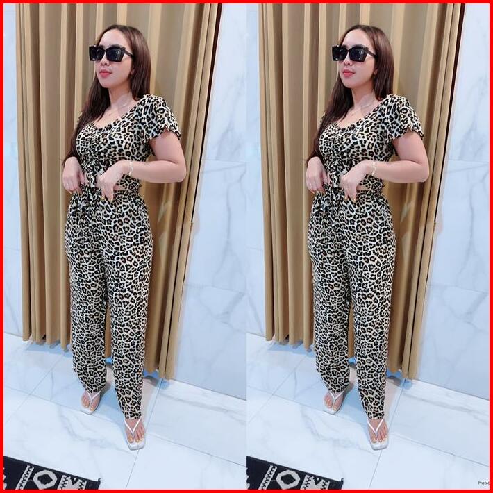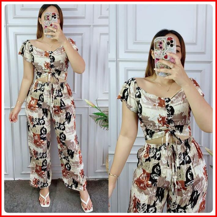 Grosir Natalia Setelan Atasan Dan Bawahan Motif Kayu Bahan Rayon Wanita Baju Panjang Leopard Karet Variasi Celana Crop T