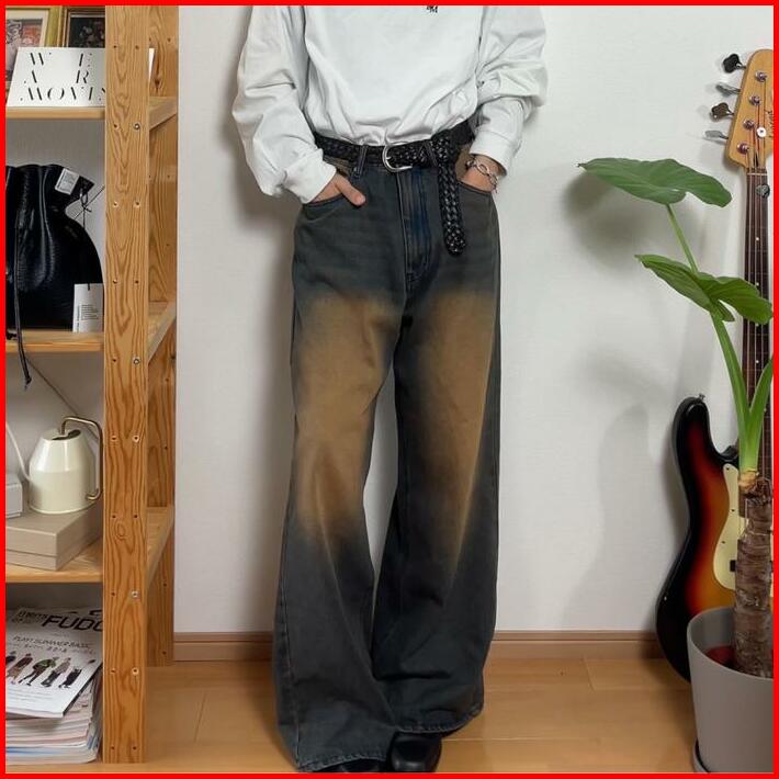 Celana Jeans Panjang Unisex Dewasa Bahan Denim Premium Baggy Straight Gombrong Distro Motif Y2k Fading Wishker Trend Kek