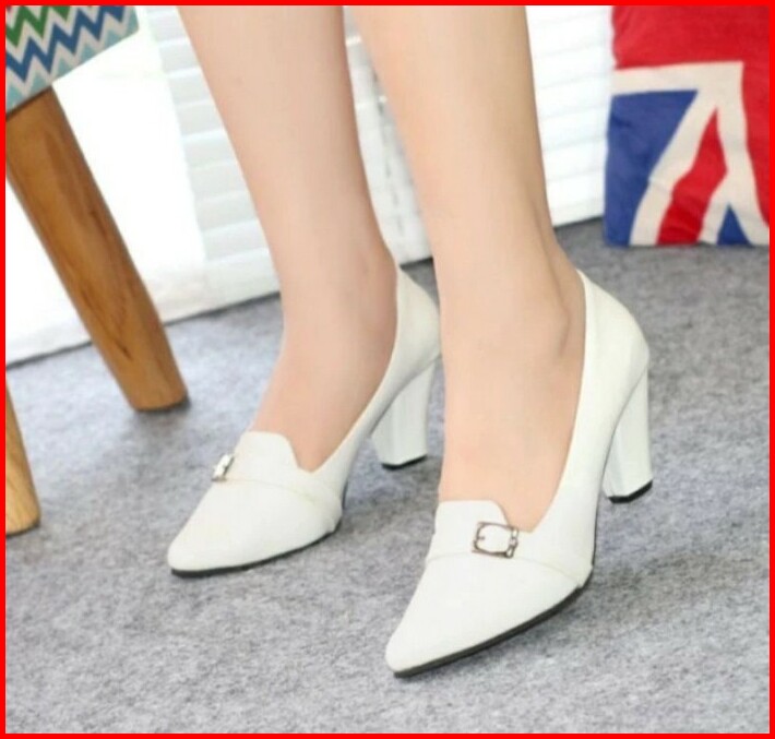 Sepatu Pantofel White Putih Premium Wanita Heels Zhra Hak Tinggi 7 Cm Sepatu Pesta Kerja Kantor Kondangan Formal Casual