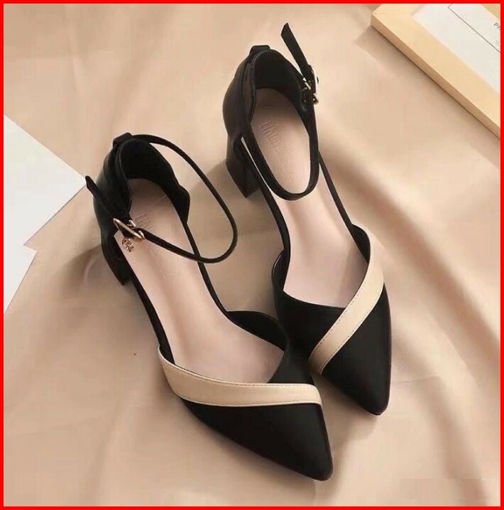 Sepatu Wanita Sepatu Pesta Formal Kerja Kantor Kondangan High Heels Hak Medium 5 Cm Kotak Tahu Premium Hitam Krem Kekini