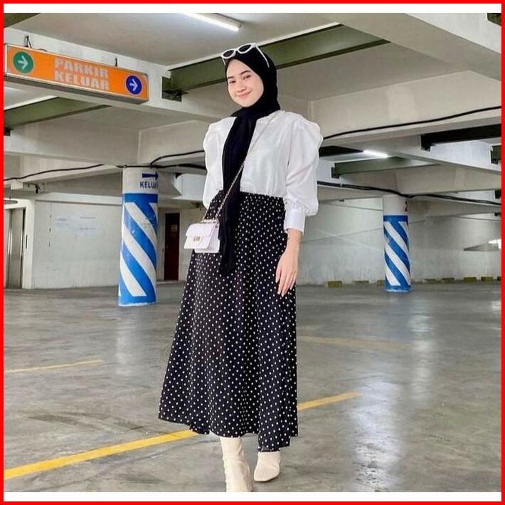 Rok Polkadot Polka Skirt Wanita Model A-line