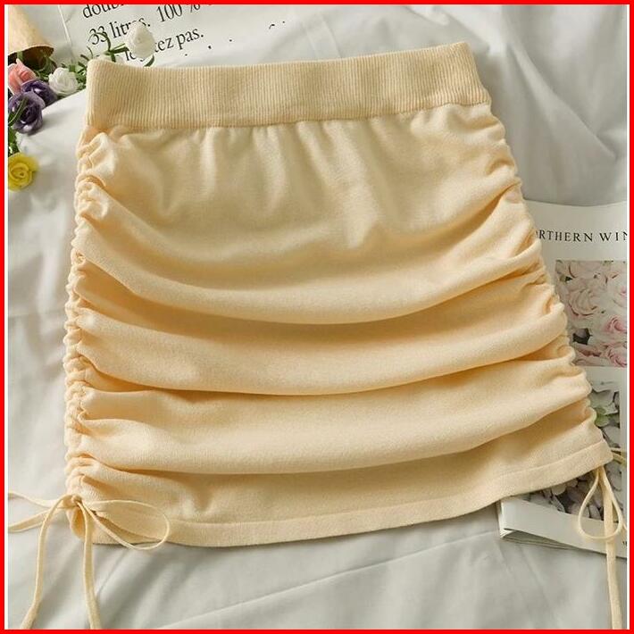 Comfitstore Und352 Rok Pendek Mini Model Serut Skirt Bahan Rajut Melar Panjang Wanita Midi