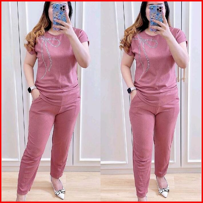 3300 24571 Setelan Knit Rajut Tebal Melar Bordir Q13236 Wanita Oneset Melar Tebal Rajut Viral Kekinian Fashion