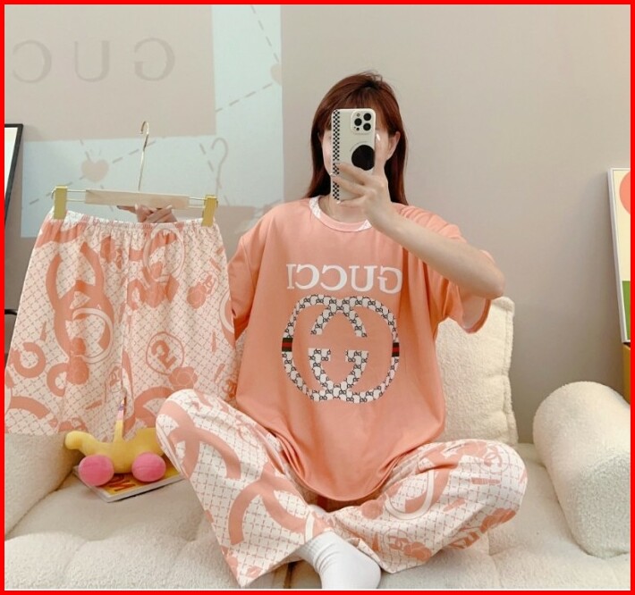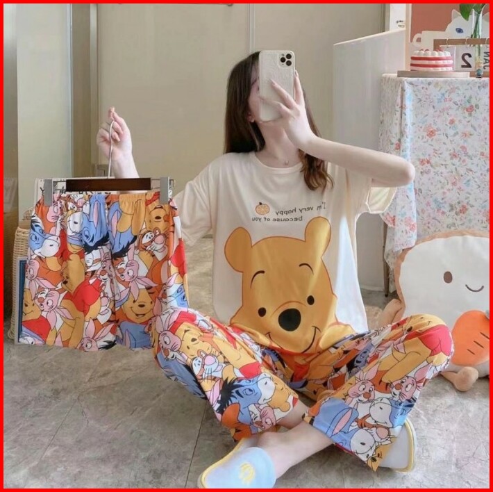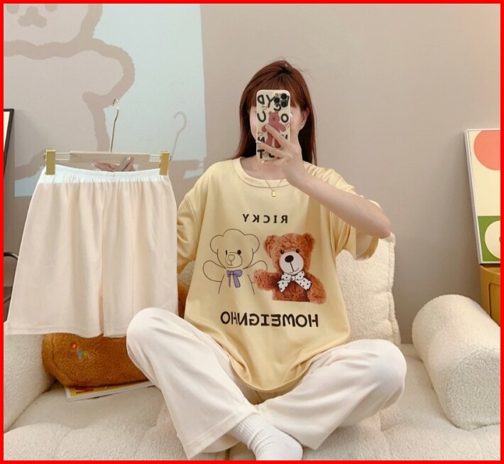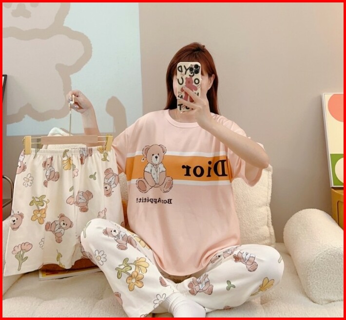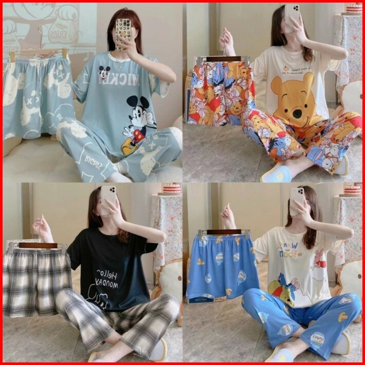 Baju Tidur Setelan 3 In 1 Wanita Piyama Import Bahan Kaos Spandeks
