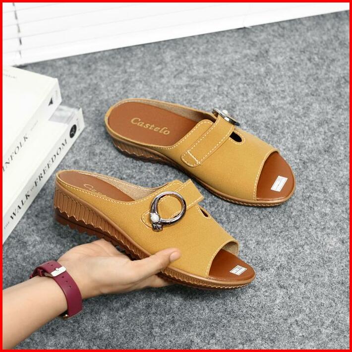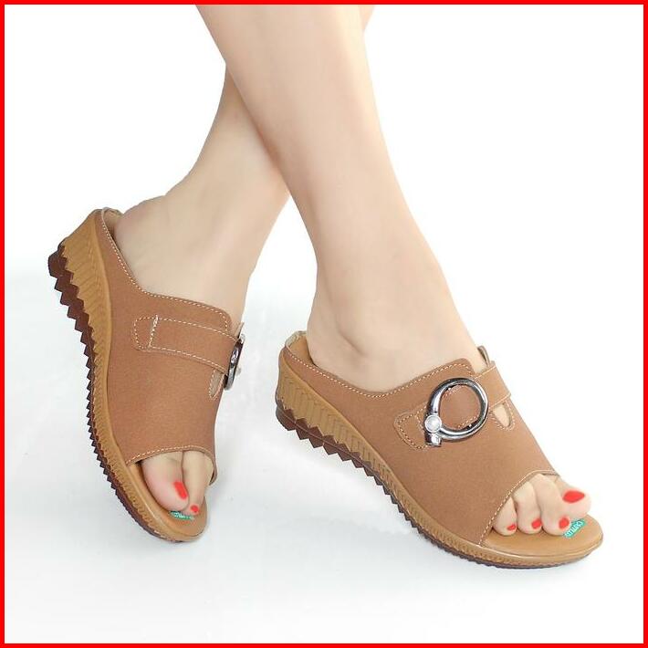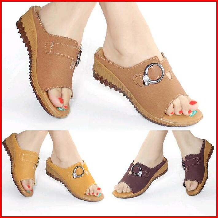 Sandal Wanita Wedges Sendal Perempuan Selop Slop Tinggi Hak Pesta Kondangan Kekinian Terbaru High Heels Ibu Terlaris Zn0