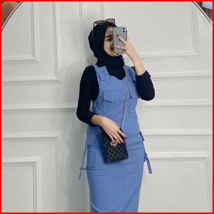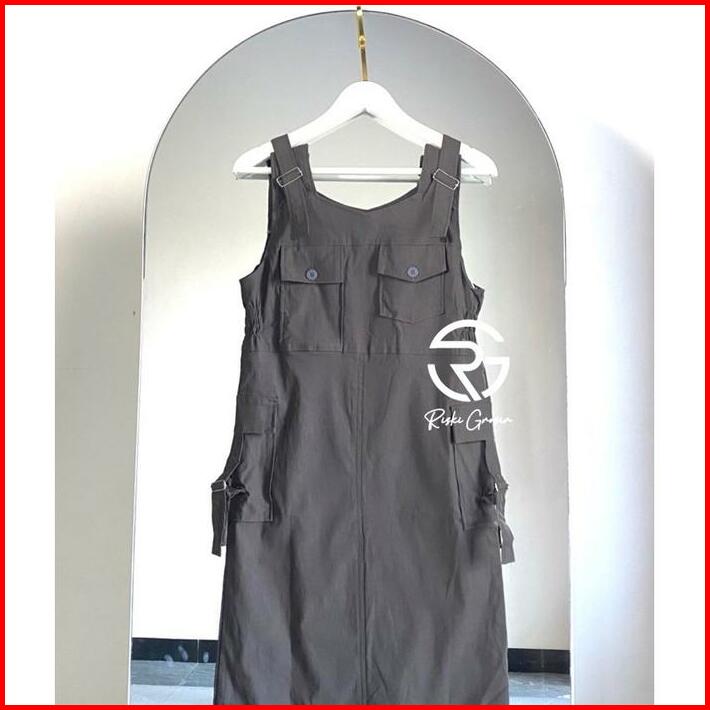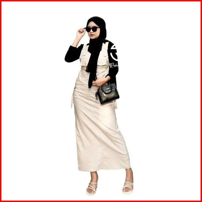 Bella Overall Rok Cargo Wanita Katun Premium Jumpsuit Rok Casual Overall Rok Trendi Panjang Katun Setelan Hitam Pendek