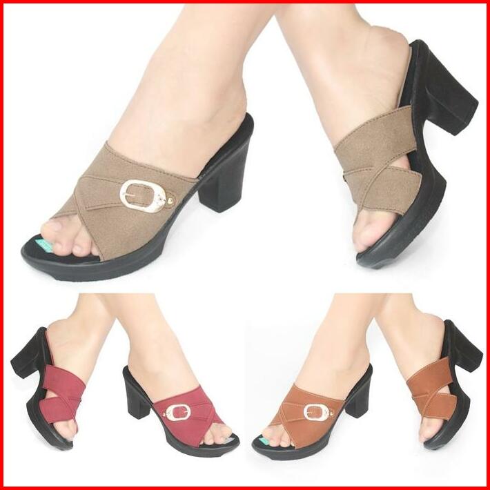 Sandal Wanita Wedges Sendal Perempuan Selop Slop Hak Tinggi Pesta Kondangan Kekinian Terbaru High Heels Ibu Ibu Cewek Te