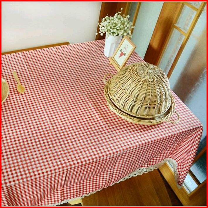 Taplak Meja Makan Motif Kotak 1cm Dengan Renda Kain Katun