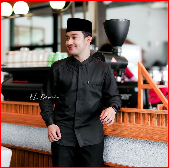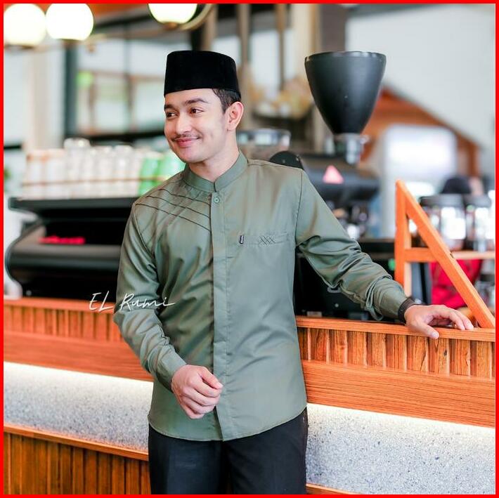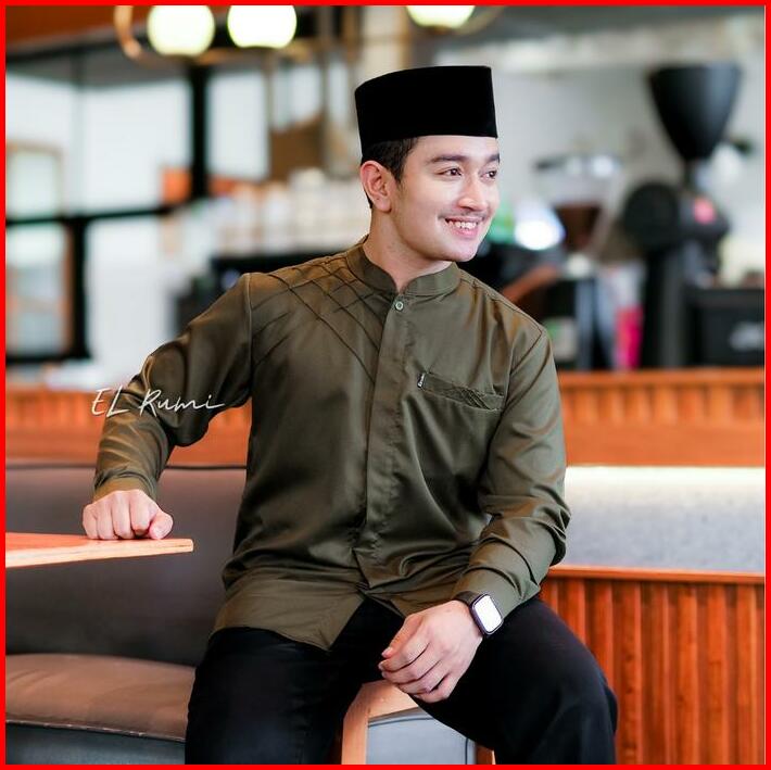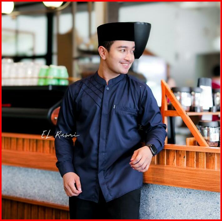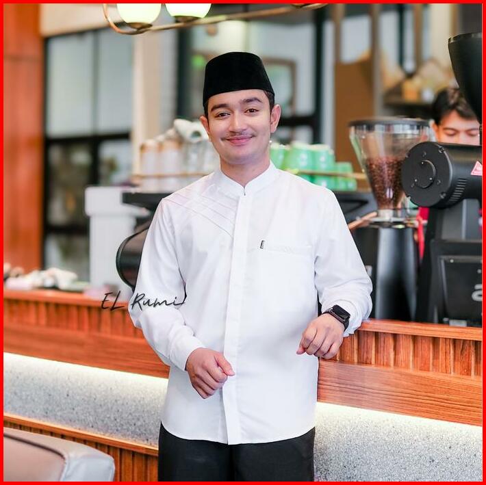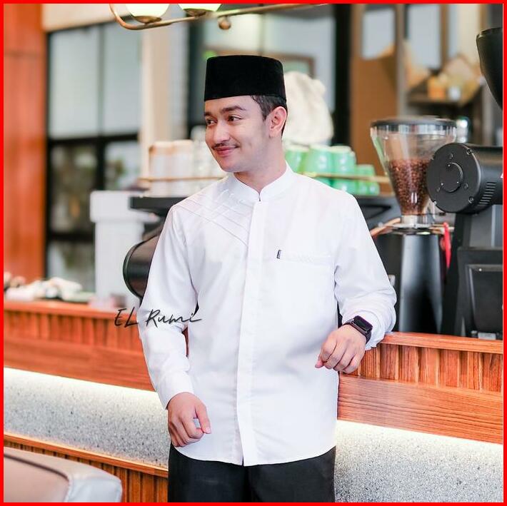 Baju Koko Pria Elrumi Motif Marvel Lengan Panjang Katun Kurta Putih Atasan Muslim